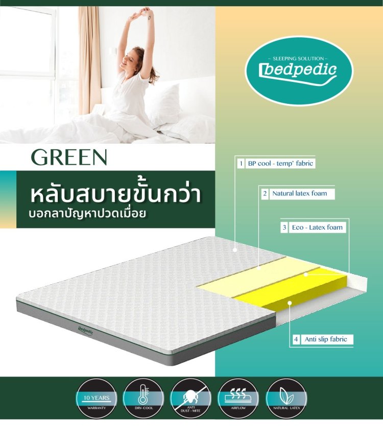 เหมาะสำหรับผู้ที่ชื่นชอบที่นอนยางพาราที่ไม่นุ่มจนเกินไป ลดอาการปวดเมื่อย